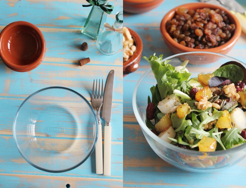 Los frutos secos en una ensalada son indispensables. Mientras masticas la lechuga en una intensa monotonía, encontrarte algún fruto seco, ya sean nueces, pipas de calabaza, pasas, arándanos secos, sésamo o pipas de girasol, te activa el paladar y dan más ganas de seguir comiendo. O al menos a mi me pasa.