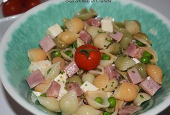 Otro de los platos muy socorridos y sanos de la cocina del verano, lo componen las ensaladas de pasta. Hay infinidad de combinaciones y le podemos poner lo que tengamos en el frigorífico. Esta que os propongo hoy es de lo más sencilla y si queréis le podéis añadir mas cosas.