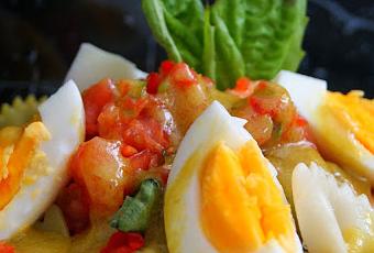 Como guarnición cocemos el huevo en agua con sal durante 10 minutos, pelamos y cortamos en cuartos.
