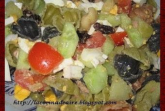 El otro día quise hacer una ensalda de pasta pero empecé a sacar cosas de la nevera y de la despensa y eso no acababa nunca!! jajaja de ahí que sea variada.. Aquí os dejo los ingredientes que lleva... la preparación es hervir lo que se tenga que hervir y mezclar todo!! Los ingredientes son: Pasta para ensaladaPatatas hervidasHuevo duroTomateQueso frescoAtúnPepinoCiruelas pasa Espero que os guste!!!