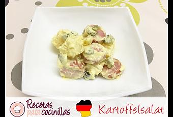 Dentro de poco se va a celebrar el Oktoberfest en Madrid (en Alemania comenzó el 16 de septiembre y terminará el 3 de octubre), por lo que queremos ambientar esta fiesta con platos alemanes. Hoy comenzamos con esta sencillísima ensalada de patatas, ¿quién se apunta a acompañarla de una cerveza? :-)Ingredientes para 2 personas:- 2 patatas medianas- 1/2 cebolla- 2 salchichas tipo Frankfurt (de las ahumadas que son grandes)- 10 pepinillos pequeños- 1 cucharada de mostaza- 4 ccuharadas de mayonesa ligera- Sal- Aceite de olivaReceta:- Lava bien las patatas.- Cuécelas en agua hirviendo con una pizca de sal hasta que estén en su punto.- Déjalas enfriar, pélalas y córtalas en dados.- Corta en rodajas las salchichas.- Pela la cebolla y córtala en cuadraditos pequeños.- Rehoga la cebolla y las salchichas en una sartén con un chorrito de aceite de oliva hasta que se doren ambas.- Corta los pepinillos en rodajas finas.- En un bol mezcla la mayonesa ligera con la mostaza hasta que se integren bien y obtengas una crema ligera de color amarillo clarito.- Mezcla todos los ingredientes en un bol grande, incluida la salsa.Bon appétit!