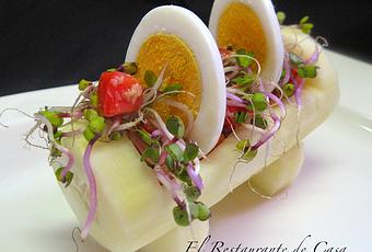 3º " En un bol cortamos el tomate y vaciamos la lata de atún, lo mezclamos y lo aliñamos con la vinagreta que habremos hecho.4º " Hervimos el huevo, lo cortamos en lonchas y comenzamos el montaje del plato.