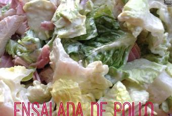 En una ensaladera juntamos la lechuga, el pollo y el jamón. En un recipiente aparte mezclamos mayonesa y un poquito de mostaza (las cantidades van en función de lo 'fuerte' que queramos que esté la salsa).