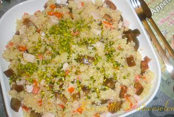 La quinoa es una especie de cereal muy rico en proteínas, aminoácidos y vitaminas como fósforo, hierro y calcio. Con ella se pueden preparar las mismas recetas que con arroz, y también es apta para celiacos. Esta es la primera vez que preparo quinoa y me he decantado por una ensalada con pechuga de pavo.