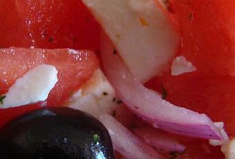 Le he retirado la corteza a las rodajas de sandia y la he cortado en cubos de unos 3 cm. (de bocado). He cortado el queso también en cubitos y lo he desmigado encima de la sandia. Le he añadido las olivas, las tiras de cebolla junto con el zumo de lima, una pizca de sal, unas vueltas de pimienta negra recién molida y un chorrito de aceite de oliva virgen. Lo he mezclado y lo he emplatado. Al final he añadido un poco de perejil picado por encima.Y este es el resultado: