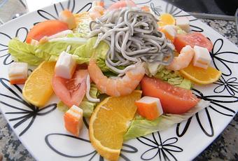 Y por último, he salteado un poco las gulas y en caliente las he colocado en la parte central de la ensalada.