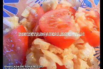 PREPARACIÓNCortamos los tomates en trozos grandes o en rodajas, al gusto. Ahora tan solo debemos colocar los tomates en una ensaladera o fuente y verter encima el aliño de mostaza. Removemos un poco y ya tenemos listo este sencillo plato de Ensalada de Tomate con Aliño de Mostaza. Es esta una receta muy indicada para acompañar con todo tipo de carnes. Salud.