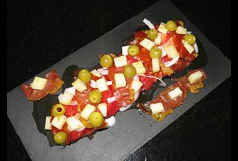 - 5 lonchas de jamón serrano.