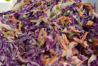 3. Agita bien todos los ingredientes del aliño en un tarro y luego mézclalo con las manos en la ensalada de col.