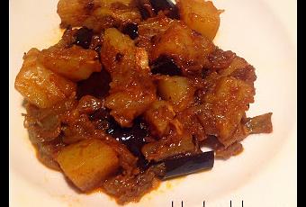 - Trocear a daditos la patata y la berenjena, que ya tenemos horneadas.