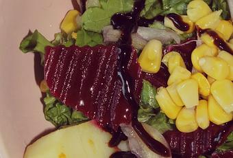 LechugaRemolachaMaizCebolla rojaAceite de linazaVinagre balsámico