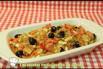 Para prepararla primero se tiene que cocer, es muy simple, ya que se cuece igual que el arroz, aunque el tiempo puede variar según la variedad, la que yo he utilizado tan solo necesita unos 15 minutos de cocción, te aconsejo que leas bien las instrucciones que vienen en el paquete, para que te quede bien cocida y con todas sus propiedades. Respecto al resto de ingredientes de esta ensalada son los que puedes encontrar en cualquier otra receta, pero ya sabes que siempre puedes adaptarla a tus gusto y añadir o quitar cualquier verdura que te guste. Con el aderezo pasa lo mimo, el vinagre puedes echar el que prefieras, de vino, de manzana o sustituirlo por zumo de limón.
