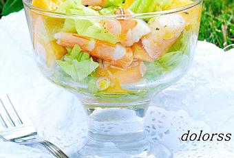 La lechuga romana, tan habitual en la mayoría de las casas, va acompañada de unas ricas gambas y de una fruta asociada al buen tiempo, el albaricoque.
