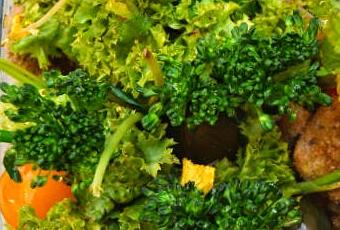 INGREDIENTES:-8 tallos de BIMI-5 zanahorias mini-5 chirivías-5 cebolla-5 nabos-una lechuga Lollo-15 tomates cherry-una barra de pan integral-aceite, vinagre y sal
