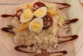 - Hervir el arroz largo siguiendo las instrucciones del envase. Escurrir y dejar enfriar.