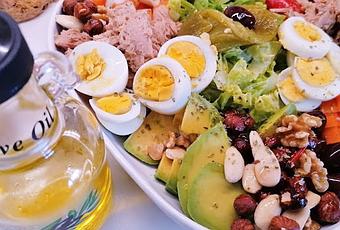 Para los días que no apetece cocinar mucho o para el verano esta fabulosa ensalada viene muy bien.Esta ensalada mixta lleva de muchas cosas ricas y saludables. También es muy energética por los frutos secos, los huevo y el aguacate.