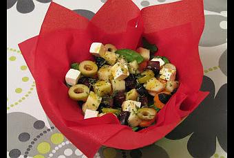 - Coloca sobre las espinacas la zanahoria, la remolacha, la manzana verde, el queso blanco, las aceitunas y el ajo negro.