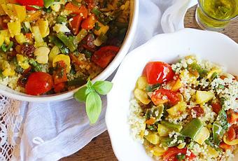Cocer el cuscús siguiendo las instrucciones del fabricante. Reservar.