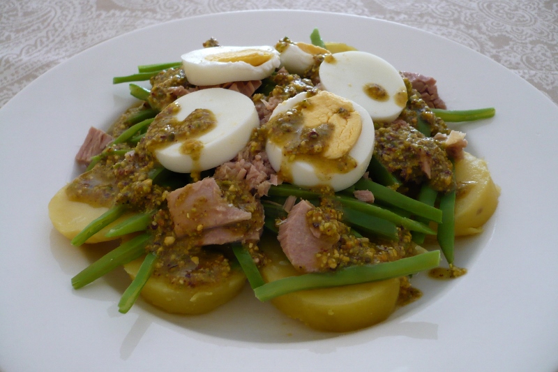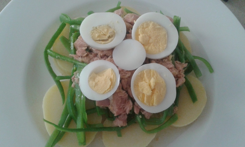 He querido darle una vuelta al tradicional hervido de patatas y judías verdes, para convertirlo en una ensalada templada mucho más apetecible.