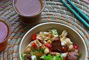 Comenzamos las semana y como viene siendo habitual lo hacemos con una rica ensalada. En esta ocasión tiene de todo y es que esta ensalada thailandesa con ternera y salsa de cacahuete es bastante completa.