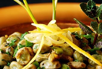 Ya están aquí, llegaron ya…Naturalmente,nos referimos a las habas y con ellas, os presentamos nuestra propuesta de hoy.Lashabas, son una leguminosa muy utilizada en Marruecos y en todo el norte de África.Son la parte más importante de las kemia, unos entremeses, equivalentes anuestras tapas y donde nunca faltan, bien al vapor, fritas o en esta ensaladaque os presentamos.Tambiénlas encontramos en muchas tajines y cous-cous, bien peladas o enteras con susvainas.Son muyhabituales encontrarlas en carros de venta ambulante, simplemente hechas alvapor y aderezadas con comino y aceite, las venden en papelinas y en estatemporada, desplazan a garbanzos y sus hermanas, las habas secas, con las quese realiza una conocida y riquísima sopa, la bissara.Vamos conesta primaveral ensalada.