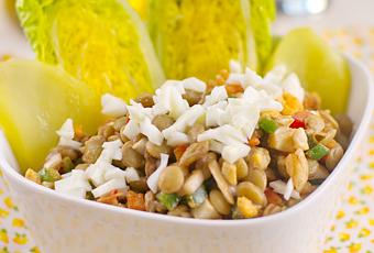 No siempre en invierno debemos comer las legumbres guisadas, para ello os traigo esta ensalada que al ser tibia en esa época del año nos entrará mejor y con muchas menos calorías que si las lentejas fueran guisadas.... Esta es mi aportación a La recepta del 15.La receta la vi en el libro Perfectmatch: Patata & huevo.