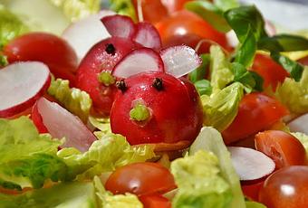 - Limpiamos los rabanitos y los cortamos en rodajas muy finas.