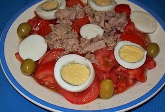 Yo, por eso de contar calorías no me pongo aceite, con el aliño del atún me sirve y también dejo aparcadas las olivas. Pero si que me unto un poco de pan en el jugo que hacen todos los ingredientes juntos, esta irresistible.