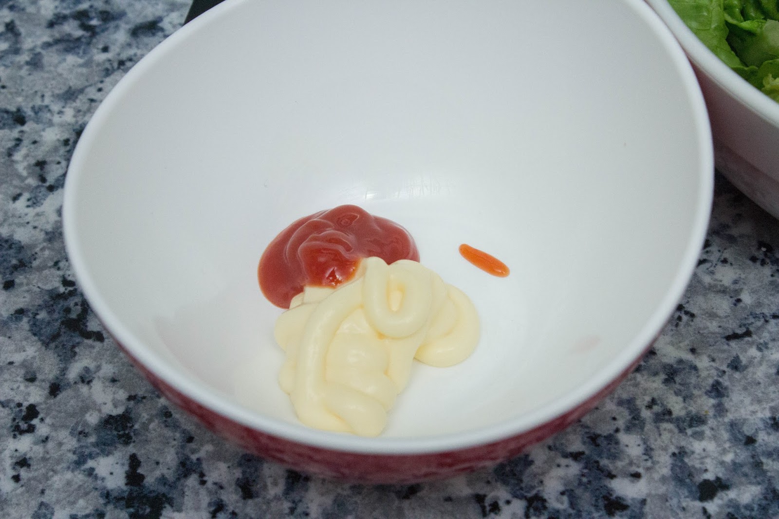 En un cuenco poner una cucharada de kepchup y una de mayonesa.