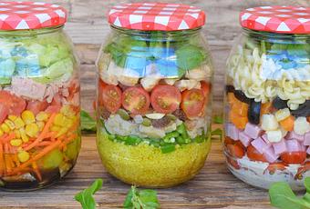 Ensaladas de tres formas diferente para llevarte al trabajo, de picnic, a la playa.........
