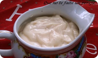 Si os parece empezamos haciendo la lactonesa. Yo la hago con Thermomix, si pincháis el enlace la tenéis en " Con sabor a huerto" de forma tradicional. Ella combina el acetite de girasol con el de oliva, yo sólo pongo girasol por cuestión de gustos y sólo un chorrito de zumo de limón y así me quedó más espesa pues para esta ensaladilla la prefiero así, ya que no lleva patatas.
