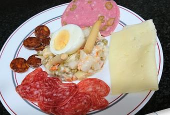 Hoy antes de que llegue el frío una ensaladilla de gambas con entremeses variados.INGREDIENTES:2 patatas medianas500 gr de gambas cocidas s10 palitos de boca de mar (surimi)1 bote pequeño de maíz dulceSalmón ahumadoMayonesa Aceitunas rellenasUn huevo duro para decorarSalELABORACIÓN:Pelaremos y lavaremos bien las patatas. Las cortamos en cuadraditos pequeños. Ponemos un cazo con agua y sal al fuego y cuando rompa a hervir añadimos las patatas y coceremos hasta que estén tiernas. Las escurriremos bien. Picaremos muy finos los palitos de surimi y pelamos y troceamos también las gambas y el salmón y las aceitunas.En un bol mezclamos las patatas, el surimi, las gambas, el salmón y el maíz, que incorporaremos muy bien escurrido. Añadimos mayonesa y mezclamos bien. Introduciremos en la nevera para que se enfríe.En el momento de servir, decoramos con el huevo duro y puntas de espárrago Y por último decoramos al gusto.