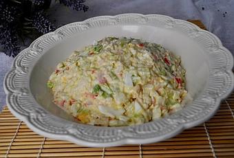 Pinchando aquí podréis ver en que consiste el juego, si tenéis curiosidad. Este mes le ha tocado a los palitos de cangrejo de Raksha o rebuscando en la despensa. Al ver la receta pensamos que era algo veraniega para estas fechas, pero que caray! no es cierto que las ensaladas son para el verano. Y ésta en concreto te viene de perlas si estás con ganas de hacer picadillo a todo lo que se te ponga por delante.