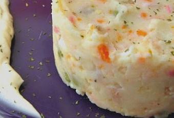 Otra receta típica de Cádiz. Para mi gusto, mucho más buena que la "rusa".- Pelar 1 kg. de patatas, cortarlas en cuadraditos y cocer a fuego lento con agua, sal y un chorrito de aceite. Cuando estén tiernas, escurrirlas, colocar en una fuente, y machacarlas ligeramente con un tenedor.