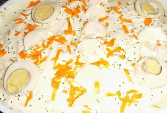 Pelamos, cortamos 4 huevos y se los añadimos también.
