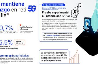 En relación a los avances de esta tecnología, Entel ya ha iniciado pruebas con el 5G Standalone (SA), que a diferencia del 5G actual utiliza una arquitectura independiente que permite diferentes beneficios, como adaptar la velocidad de subida o de bajada, reducir la latencia y dar mayor seguridad de acuerdo a las necesidades de cada cliente.