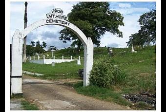 Así lucia la entrada principal del Mount Hope Cementery en 1912, con el arco de mampostería, el edificio del administrador y los frondosos árboles de mango que le caracterizaron hace más de 80 años atrás.