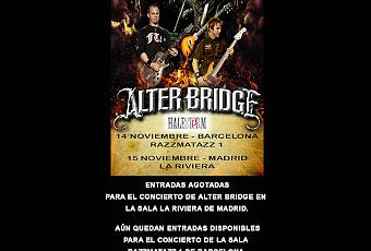 Los estadounidenses Alter Bridge llegan esta semana a España para presentar las canciones de su último y reciente disco, 'Fortress'. La progresión de la banda en nuestro país es innegable, como demuestra el hecho de que tuvieran que cambiar a recintos de mayor aforo de los inicialmente previstos hace unas semanas. Por si fuera poco, ahora la promotora Rock n Rock da por agotadas las entradas para su concierto del viernes en La Riviera madrileña. Para la cita en la barcelonesa Razzmatazz aún quedan boletos a la venta.