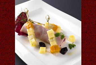 Presentación: formar la brocheta con el queso y las gelatinas, alternando colores. Colocar al lado del canelón y antes de consumir, poner un poco de sal gruesa sobre cada gelatina.