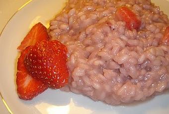 300 gr de fresas50 gr de chalota (en su defecto, cebolla+ajo)Mantequilla, una cucharada para el sofrito y otra para terminar.150 ml de vino blanco seco30 gr de queso parmesano de buena calidad 1/2 litro de caldo de verduras hirviendoPreparación:Empezamos haciendo el sofrito de la chalota en la mantequilla hasta que quede transparente sin dejar que se nos queme. Sofreimos el arroz y añadimos el vino hasta que evapore. Entonces echamos la mitad de las fresas, añadimos el caldo y dejamos hervir removiendo durante 15 minutos. Añadimos más caldo si es necesario. A los 15 minutos echamos el resto de fresas y dejamos un par de minutos más. Incorporamos el parmesano y la mantequilla y removemos enérgicamente. Servir de inmediato. Fuente: cosasdechari