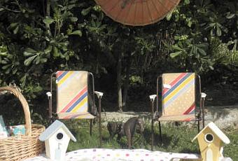 Hacia tiempo que compre estas sillas para niños de años setenta, y se me había olvidado enseñároslas, así que he preparado en el jardín un rincón infantil al que os invito a que paséis.