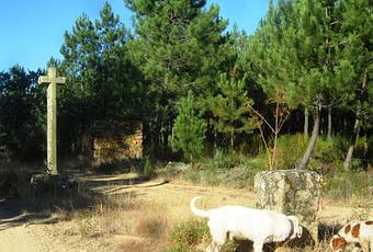Esta encrucijada invita a un momento de sosiego y contemplación de la caseta de los guardiñas, la cruz, la marra o poste indicador de las dos naciones hermanas desde siempre y a pesar de algún mal entendido de otros tiempos. Aquí Blanquito y Brauni buscan diferencias entre uno y otro lado de la Raya, tampoco los perros encuentran sentido a las separaciones entre pueblos y personas.De modo que continuamos nuestra marcha, siempre por senderos bien cuidados; ahora los conejos invisibles y acaso asustados se esconden entre las urces y los robles que se están rehaciendo del último incendio de hace una década. Entre el canto despreocupado de las aves y mi despreocupado silencio, llegamos a la ruinosa construcción de lo que fue otro puesto de vigilancia: “La Caseta de las Terrezuelas”.
