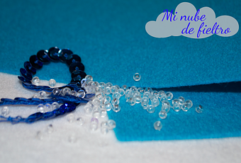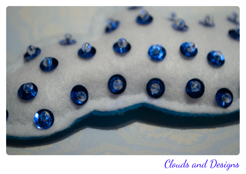 Pero ayer… me dio por ahí, y es que vi los muñequitos que tengo colgados en mi escritorio y me dije… "Inés… ¿porqué no te entretienes un ratito y haces algo con fieltro?" y me convencí a mi misma y me puse a ello, y con dos trocitos y unas cuantas lentejuelas hice la nubecita :D