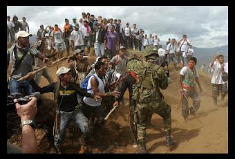 Los grupos indígenas de Cauca protestando contra las fuerzas armadas