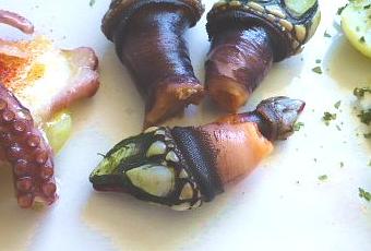 Ni yo me he equivocado, ni tu has leído mal y el blog sigue siendo de cocina… Ya sabes, hay días que te levantas con el pie izquierdo, otros con el pie cursi, también hay días que no sabes ni cómo te mantienes en píe, yo ayer me levanté con el pie canalla, el gamberro, y de ahí el título de la entrada y el nombre del plato que te propongo. Sirva además como homenaje a todos, en especial a portugueses, brasileiros y gallegos que de vez en cuando visitan mi cocina con vistas. Ellos ya lo saben pero a ti te lo cuento yo, pulpo en gallego se dice polbo que suena igual que polvo (son palabras homófonas… vaya palabro este)y para pronunciar ambas ponemos los labios algo contraídos, provocando una débil tensión labial… casi, casi… igual que para dar un casto beso...Dicho esto y aclarados ambos polvos te diré que para elaborar el plato pensé en productos netamente gallegos : pulpo (polbo), cachelos (patacas), percebes y grelos (en polvo) Y de todo esto salió la tapa que vamos a preparar, porque tengo algo que festejar y es que mi propuesta fue elegida como la mejor receta por Cocinando Sabores y Cerezas del Jerte en el concurso Cocinando Sabores. Cerezas del Jerte.