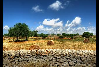 Los muros enseco, que forman un intrincado retículo en los campos sudorientales de Sicilia,constituyen uno de los ejemplos más significativos de “arqueología agrícola”.Estos muros tan especiales,construidos sin cal ni cemento, según las enseñanzas de un antiquísimo oficio,aún hoy cumplen con su función: delimitar el terreno y hacer de freno a laformación de una capa dura de tierra, la cual impide la producción del humus.Para visitar yfotografiar los muros en seco hay que hacer base en Módica o Ragusa, yrecorriendo la “campagna” se puede probar y comprar el “caciocavallo”, un quesode particular sabor dada la exclusiva alimentación de las vacas con pasturassalvajes.La mayor parte delos terrenos delimitados con los muros en seco se cultivan para pasturas. Perono es raro encontrar campesinos que usen antiguos arados o rastras de clavos,como enseñaron los árabes a los sicilianos hace cientos de años, capaces demoverse en terrenos accidentados.