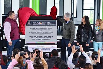 Amecameca, Estado de México. El Gobernador Alfredo Del Mazo Maza entregó la Unidad Académica Amecameca de la Universidad Digital del Estado de México, la cual tiene como finalidad fortalecer el modelo de educación a distancia, para construir un sistema educativo moderno que acerque a las nuevas tecnologías a la población mexiquense. "Mi gobierno apuesta por la modernización de la educación, la renovación de métodos de enseñanza y el acceso a la tecnología como las bases para formar mexiquenses productivos y comprometidos con la construcción de un Estado de México, edificado por ideas brillantes y habitado por familias fuertes”, apuntó Del Mazo Maza."Y hoy me da muchísimo gusto inaugurar este tercer plantel de la Universidad Digital creado durante nuestra administración, de cuatro que existen de la Universidad Digital, tres se han creado a lo largo de esta administración y este nuevo plantel de Amecameca es el tercero que inauguramos con el compromiso que hicimos hace algunos meses de que para el año que entra tengamos en total, 10 planteles de la Universidad Digital en distintas partes del Estado de México”, expresó.El Gobernador Alfredo Del Mazo detalló que anteriormente los 405 alumnos de esta Unidad Académica que requerían asistir a clases presenciales, iban a tomarlas a la Casa de Cultura del municipio, por lo que agradeció a las autoridades municipales el apoyo otorgado a los estudiantes. Afirmó que con las instalaciones inauguradas, crecerá la matrícula de esta Unidad Académica, ya que permitirá que más jóvenes, mujeres y hombres de la Región de los Volcanes puedan estudiar a través de esta modalidad. "Hoy tenemos la oportunidad de entregar este plantel de la Universidad Digital del Estado de México, el plantel Amecameca, que esta instalación le permita a muchas mujeres y hombres seguirse preparando, como lo han venido haciendo a lo largo de muchos años, pero ahora con una sede, con un plantel de esta Universidad Digital", puntualizó.Alfredo Del Mazo señaló que las transformaciones tecnológicas del siglo XXI traen consigo retos que en el Estado de México se afrontan con el compromiso de mover a la sociedad mexiquense hacia la vanguardia, y en materia educativa se apuesta por la modernización de la educación, mediante la renovación de métodos de enseñanza y el acceso a la tecnología. Informó que datos del Instituto Nacional de Estadística y Geografía (INEGI), indican que a nivel nacional, 13 de cada 100 alumnos de bachillerato y 12 de cada 100 de licenciatura, estudian en el Estado de México. Informó también que solo uno de cada cuatro mexiquenses en edad de estudiar bachillerato y dos de cada 10 que pueden estudiar la universidad, lo hacen.Por ello, destacó la importancia de convertir a la innovación tecnológica como una aliada para atender al sistema educativo más grande del país, que cuenta con 4.5 millones de estudiantes mexiquenses, con acciones como la consolidación de la Universidad Digital del Estado de México. El mandatario estatal precisó que la Universidad Digital del Estado de México colabora en proyectos de educación a distancia con la Universidad Nacional Autónoma de México (UNAM), el Colegio de Bachilleres, la Universidad Autónoma del Estado de México y la Universidad de Guadalajara, entre otras.Puntualizó que a la fecha han egresado 50 mil alumnos de esta universidad; actualmente cuenta con una matrícula de más de 17 mil estudiantes, de los cuales, el 70 por ciento estudia bachillerato, el 20 por ciento educación superior y el 10 por ciento restante forma parte de las tres maestrías o doctorado que ofrece esta institución.Agregó que desde 2012, los 50 mil mexiquenses que han iniciado sus estudios a través de este sistema educativo, el 62 por ciento son mujeres, lo que representa el empuje que este sector de la población tiene para seguir su preparación académica.