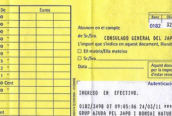 Como punto final a la campaña de donaciones que organizamos en Manresa el Sábado 19 y el Domingo 20 de Marzo y para garantizar la transparencia de nuestra iniciativa, el blog de la asociación Bonsái Natura, Globonautas y este blog publicamos los documentos de cómo hemos gestionado el dinero y como ha sido entregado al consulado de Japón para que sea entregado a la cruz roja japonesa para los damnificados por el terremoto y el tsunami de la región de Tohoku en la costa del Pacífico de Japón.