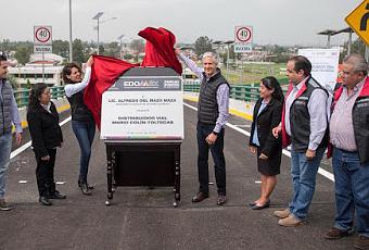 Tlalnepantla, Estado de México. Al inaugurar la tercera etapa del Distribuidor Vial Mario Colín-Toltecas, el Gobernador Alfredo Del Mazo Maza destacó que invertir en infraestructura y movilidad vial traerá mayor desarrollo a la entidad, por lo que están en proceso 219 obras viales con una inversión superior a los 3 mil 350 millones de pesos. “Ese es parte del compromiso que tenemos y que, por supuesto, el día de hoy ratificamos con la inauguración de este Distribuidor Vial Mario Colín que estamos seguros de que va a ser de gran beneficio para toda la población de Tlalnepantla”, afirmó. Acompañado por los Secretarios de Comunicaciones y de Obra Pública, Luis Limón Chávez y Rafael Díaz Leal Barrueta, respectivamente, Del Mazo Maza indicó que las obras que se realicen para mejorar la conectividad de la entidad, representan también un ahorro de tiempo para las familias, en traslados. “Todas las inversiones que podamos hacer para mejorar la conectividad en nuestro Estado, para mejorar la movilidad en nuestro Estado, son inversiones que primero que nada representan un ahorro de tiempo para las familias”, refirió el Jefe del Ejecutivo estatal.El Gobernador mexiquense informó además que el Distribuidor Vial Mario Colín-Toltecas se construyó con recursos federales, por lo que agradeció al Presidente de la República, Enrique Peña Nieto, por cumplir con este compromiso que tenía en Tlalnepantla. Detalló que esta obra permitirá mejorar la movilidad de esta región de la entidad, pero principalmente beneficiará a Tlalnepantla, municipio que se caracteriza por tener una actividad sólida en materia económica, industrial y de servicios.“Estamos seguros que es una obra que le va a servir mucho a los vecinos del municipio de Tlalnepantla, pero también a toda la gente de esta zona del Valle de México que diariamente transita por esta zona de mucha afluencia, tanto en la parte del Estado de México, como en la parte de la Ciudad de México”, expresó.Por su parte, el Secretario de Comunicaciones señaló que entregar este tipo de obras tiene como finalidad convertir al Estado de México en el principal centro logístico del país, además de procurar y facilitar la movilidad de los mexiquenses. “Con esto generamos acciones emblemáticas que detonen el desarrollo, el progreso y el bienestar social”, puntualizó. El Distribuidor Vial Mario Colín-Toltecas permitirá reducir los tiempos de traslado, se tiene contemplado un aforo vehicular diario de más de 38 mil unidades, y beneficia a alrededor de 100 mil habitantes de esta zona de Tlalnepantla.Además, mejora los accesos para el Instituto Tecnológico de Tlalnepantla,el plantel de la Universidad Nacional Autónoma de México(UNAM), así como del Tren Suburbano. Esta obra beneficia a los municipios de Tlalnepantla, Atizapán de Zaragoza, Cuautitlán, Tultitlán y Nicolás Romero, región donde viven más de dos millones de habitantes, quienes ahora tendrán una vía que los conecte de manera más rápida a laZona Industrial de Vallejo en la Ciudad de México.