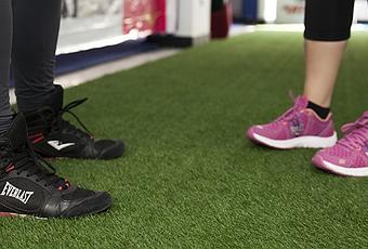Pasé una hora de entrenamiento muy divertida, claro que no me dejó relajarme ni un minuto. Me ayudó a corregir algunos errores que he hecho toda mi vida y que nadie me había explicado, como por ejemplo de respiración y la forma en como me agachaba y que estaba dañando mis rodillas.